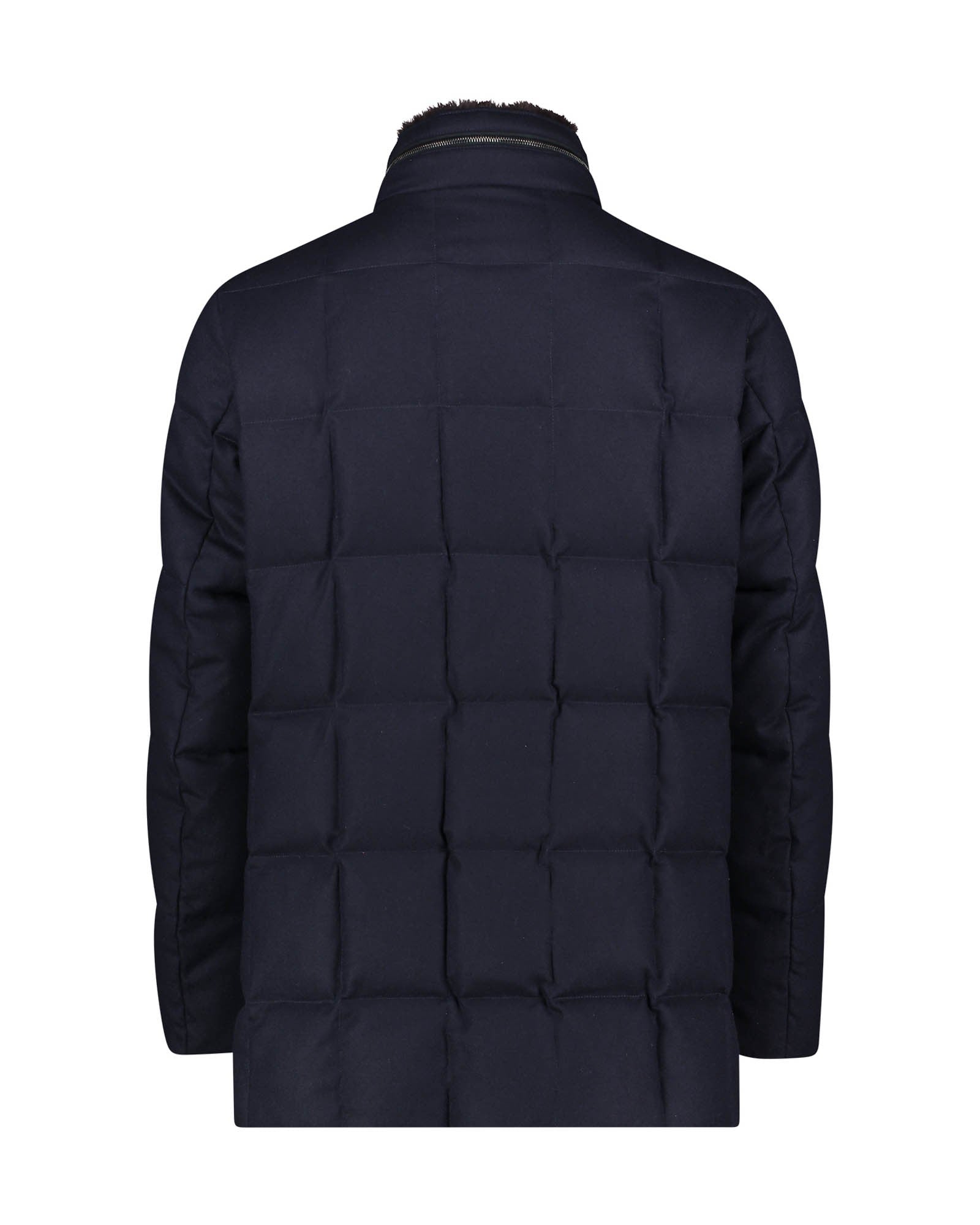 Giaccone con collo in ecopelliccia staccabile, dettagli in ecopelle, trapunta a quadri, imbottito in piuma